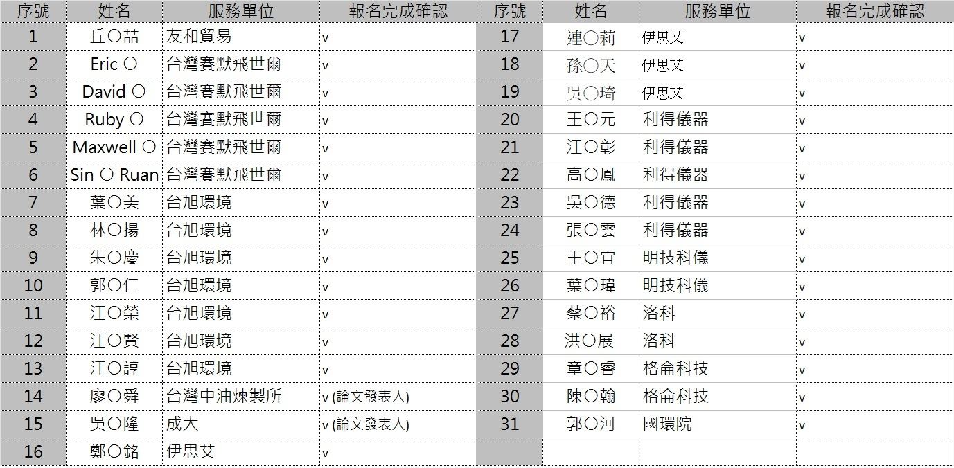 以內的時間更新名單。名單不包含僅參加會員大會者。)