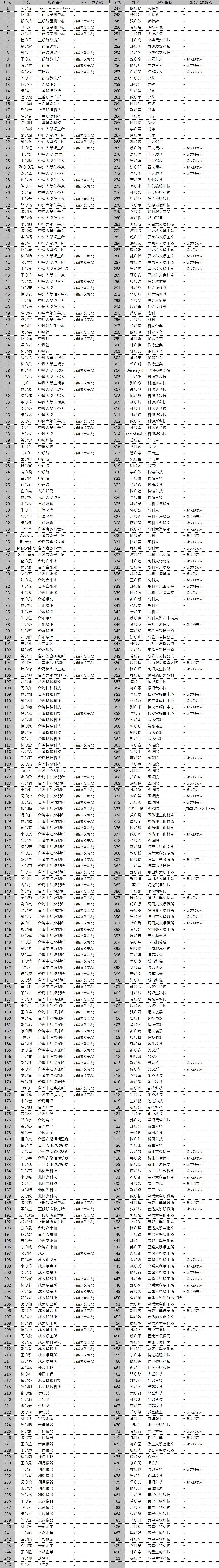 以內的時間更新名單。名單不包含僅參加會員大會者。)